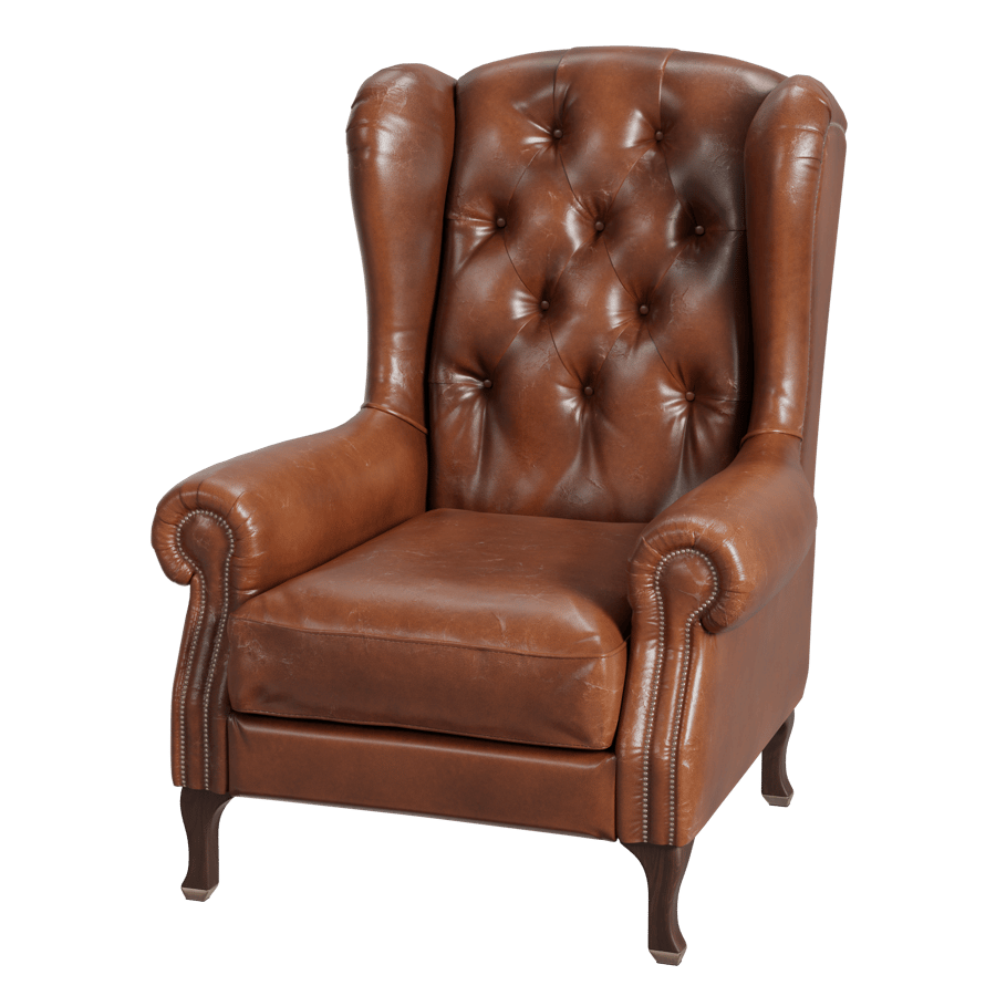 Tufted Leather Antique Armchair Model, Brown Poliigon